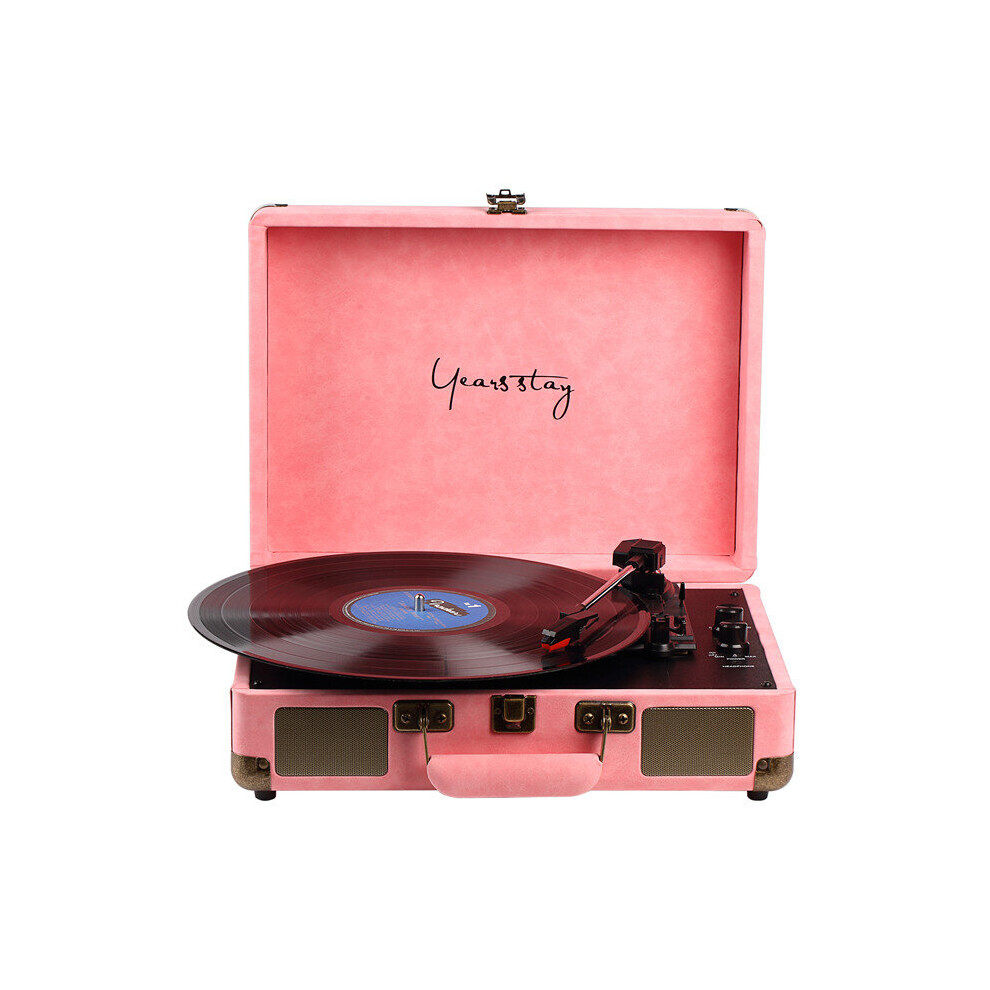 Portable Pink Vinyl Record Player Turntable 33/45/78 RPM Bluetooth 5.0