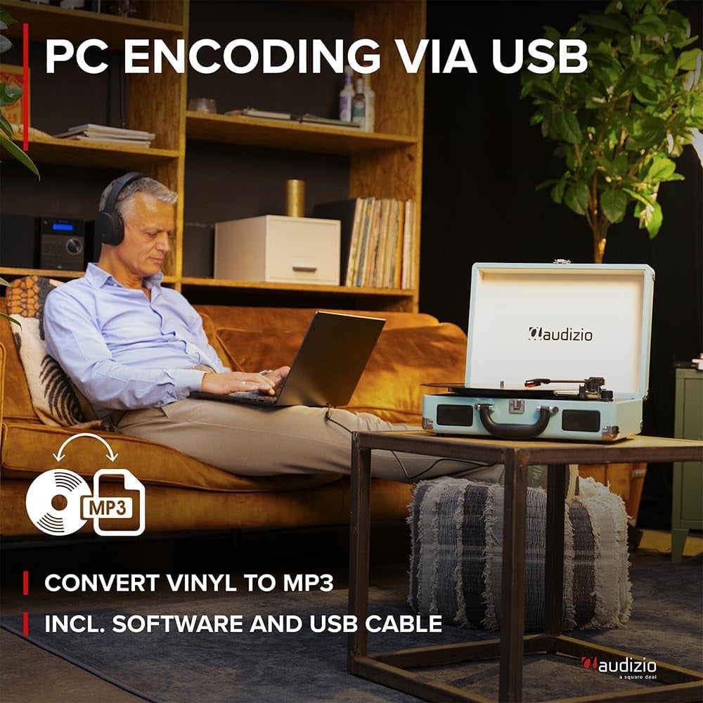 Audizio RP114BK Portable Record Player with Built-in Speakers, USB Vinyl to MP3
