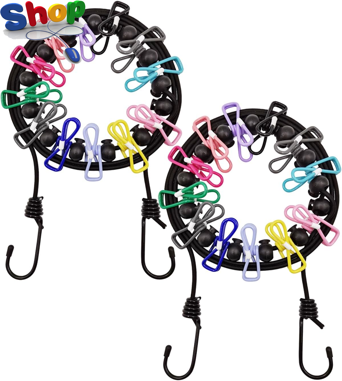 Travel Washing Line,12 Colorful Clips with Portable Camping Washing Line, Adjustable Elastic Retractable Clothes Line for Indoor and Outdoor, Balcony, Outdoor Camping use