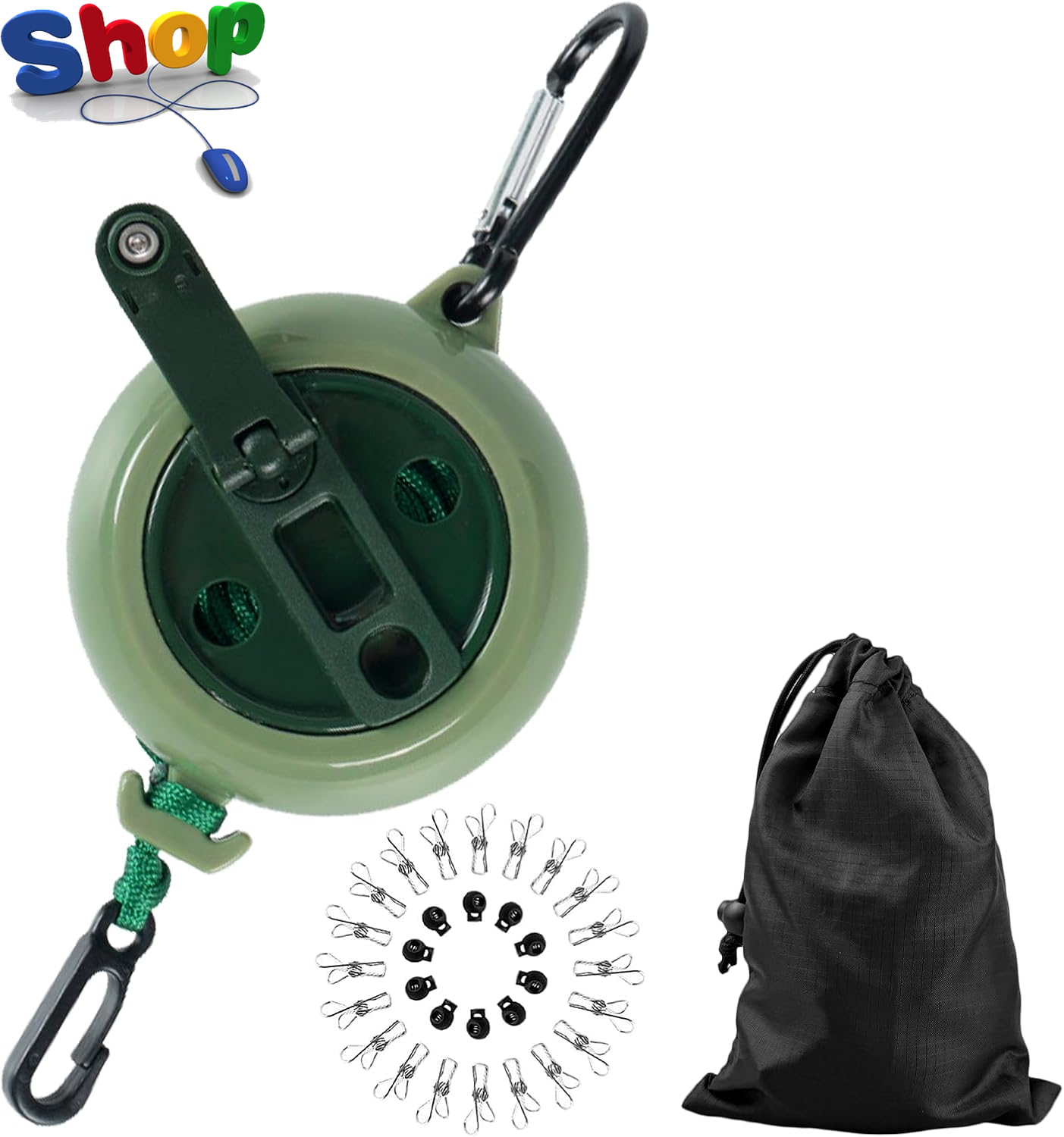 10M Portable Retractable Washing Line – Clothes Line with 10 Fixed Buckles & 20