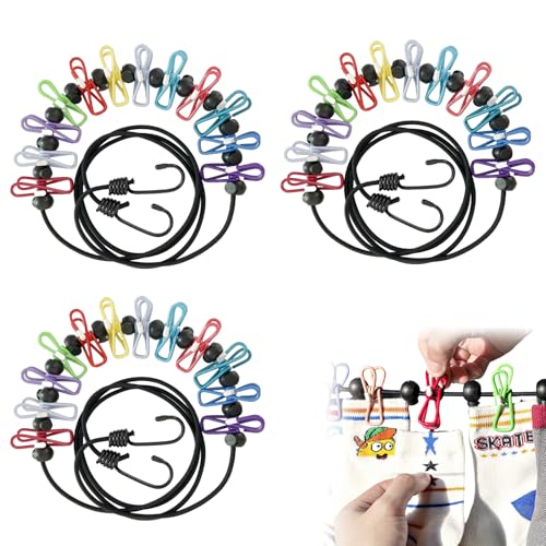 3 Pcs Travel Washing Lines, Portable Washing Line with 12pcs Colorful Clips, Camping Accessories for Indoor Laundry Drying Line 1.8 M, Outdoor Camping Accessories
