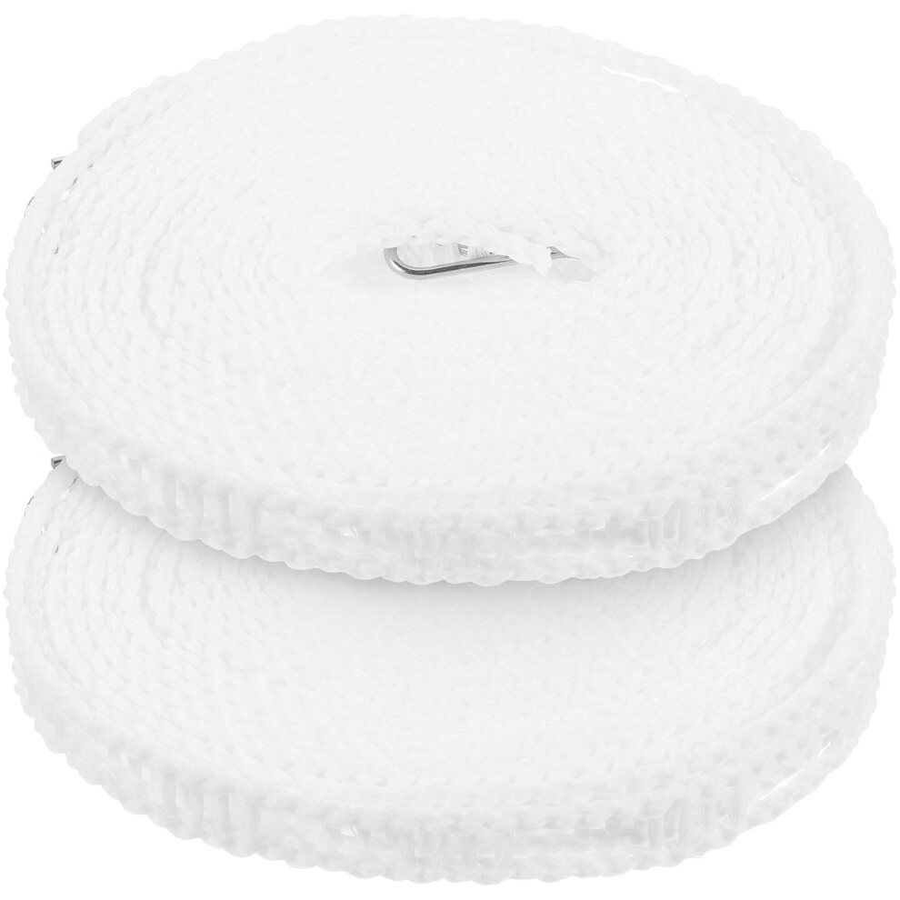 2Pcs 16.4ft Nylon Windproof Non-Slip Portable Clothesline Washing Line, White