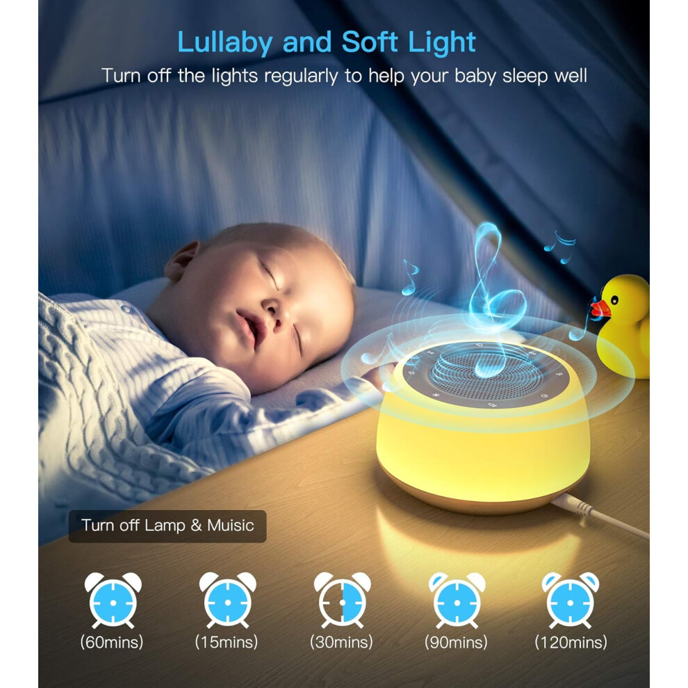 White Noise Machine Baby, Portable White Noise Machine with 19 Soothing Sounds, Nursery Night Light, 32 Volume&4 Timer, White Noise Sound Machine for