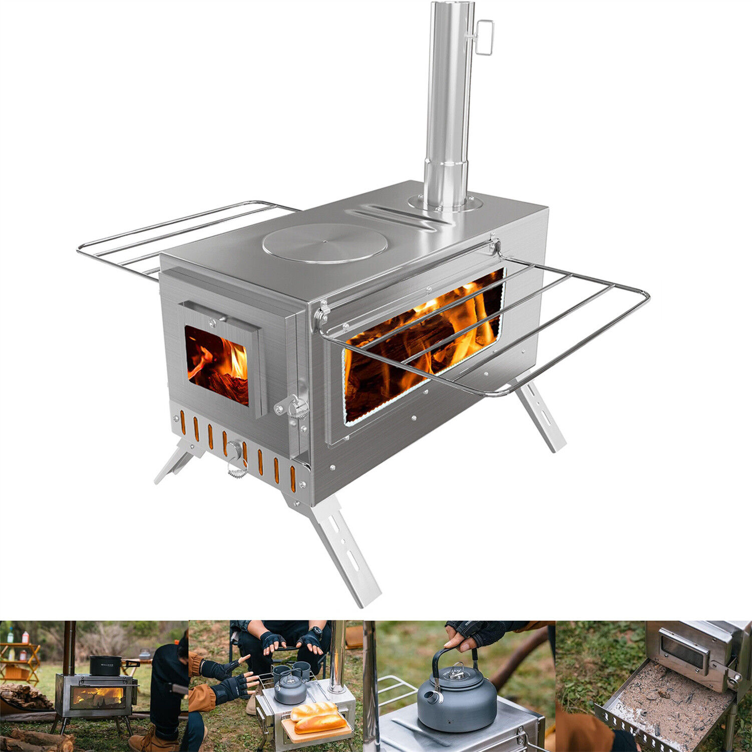 Large Tent Stove Portable Wood Burning Stove Stainless Steel for Camping Hunting
