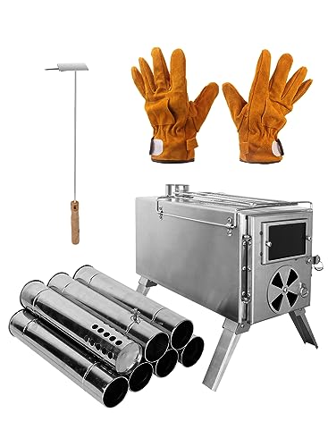 Portable Large Wood Burning Tent Stove 7 Chimney Pipes Outdoor Heating Cooking