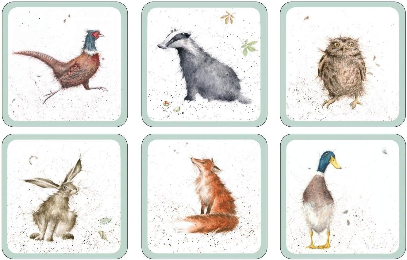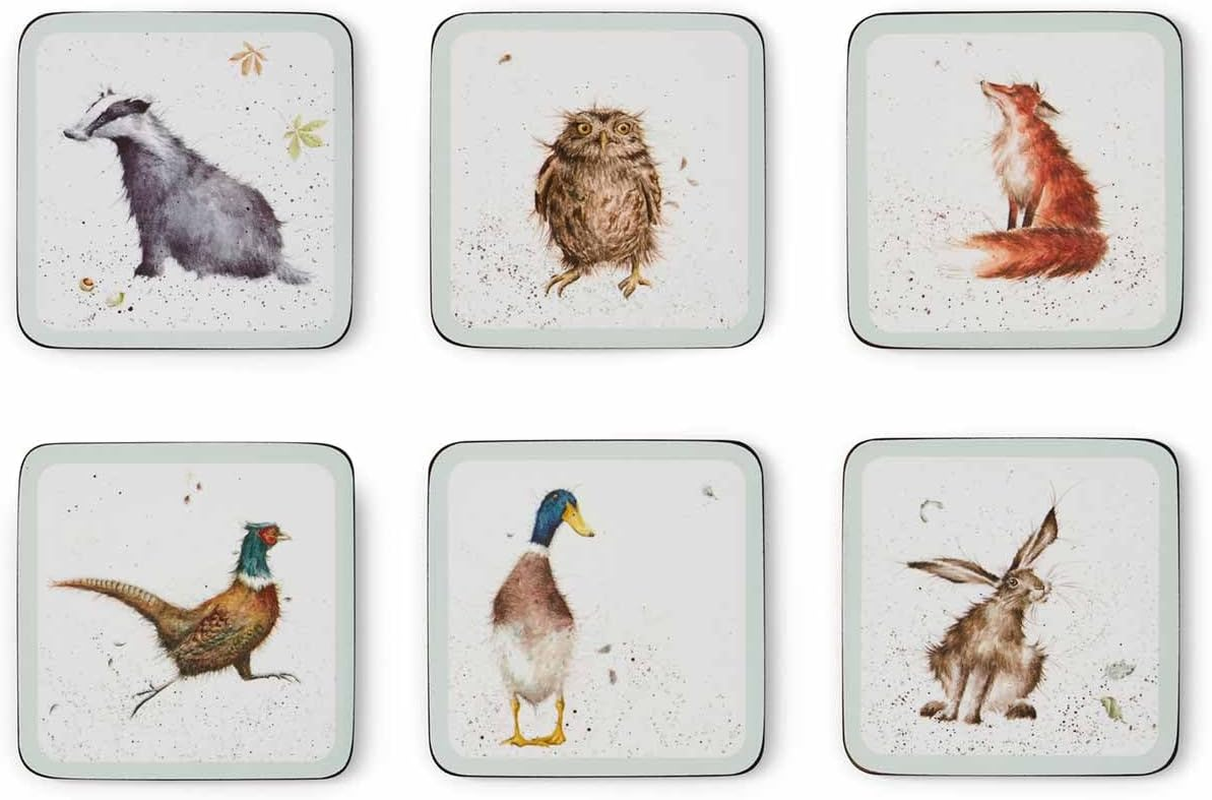 Portmeirion Home & Gifts Wrendale Designs Coasters, Set of 6, Multi-Coloured,15