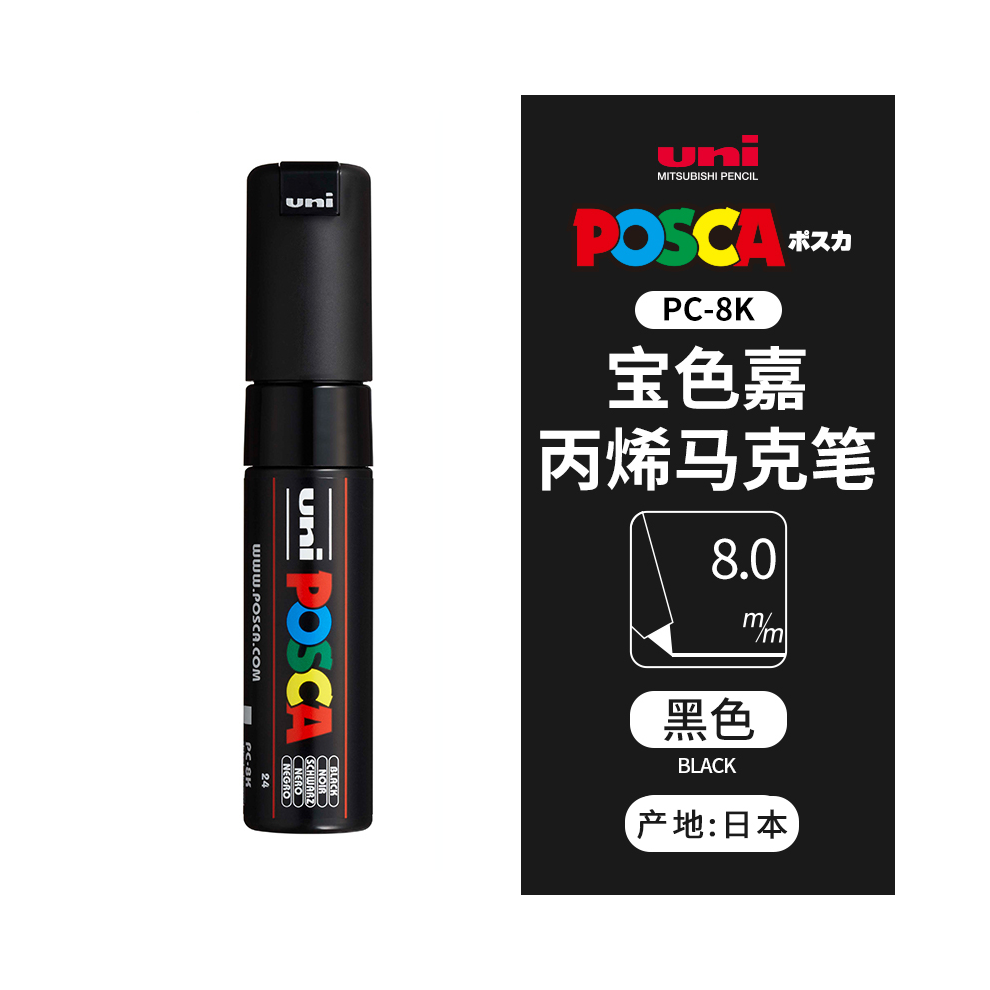 (PC-8K Black) 1PC Plumones POSCA Paint Markers PC-8K 8mm Broad C