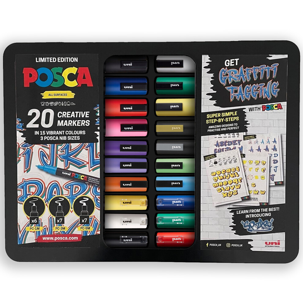 POSCA Paint Markers - PC-1M/3M/5M - Graffiti Tin of 20 Colours