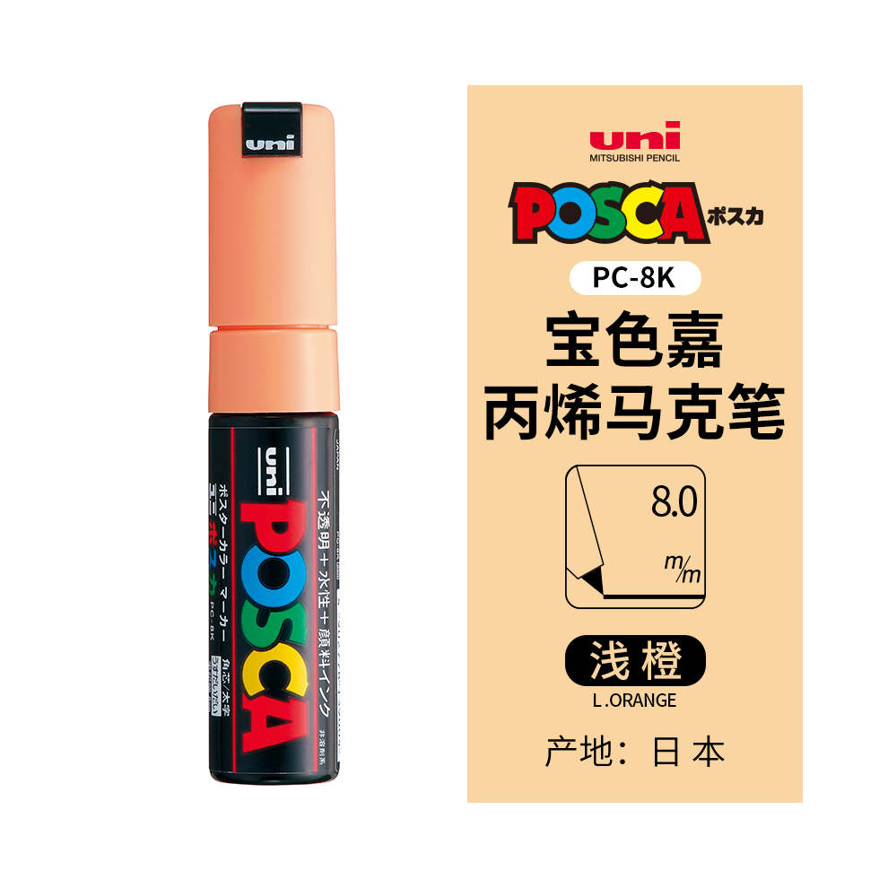 (PC-8K Light Orange) 1PC Plumones POSCA Paint Markers PC-8K 8mm Broad C