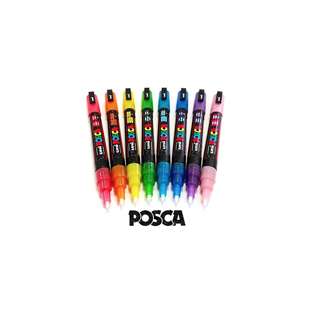 POSCA Glitter Paint Markers PC-3ML - Full Range Set of 8 Glitter Paint Markers - In Gift Box