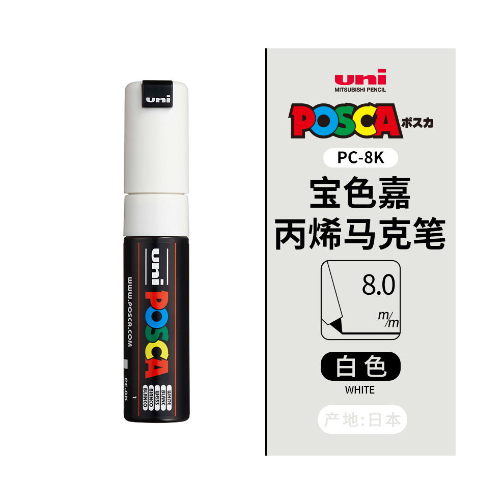 (PC-8K White) 1PC Plumones POSCA Paint Markers PC-8K 8mm Broad C
