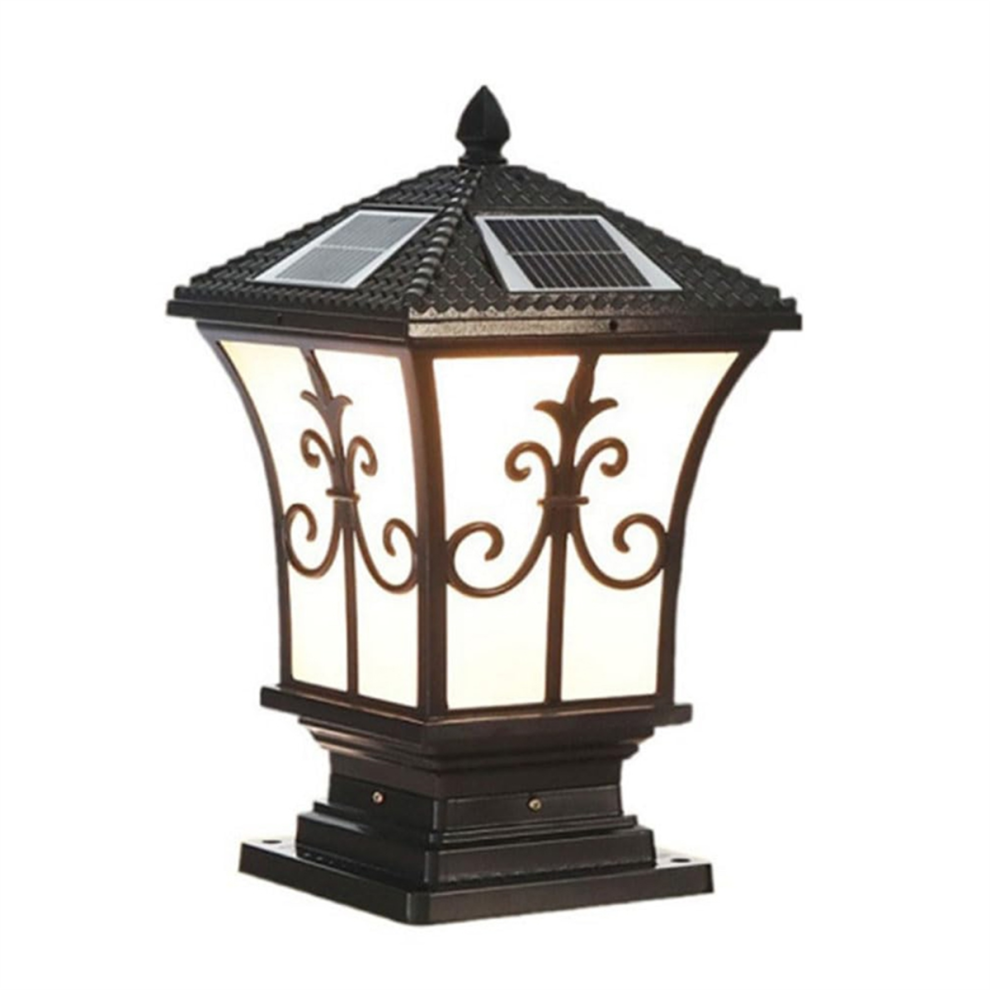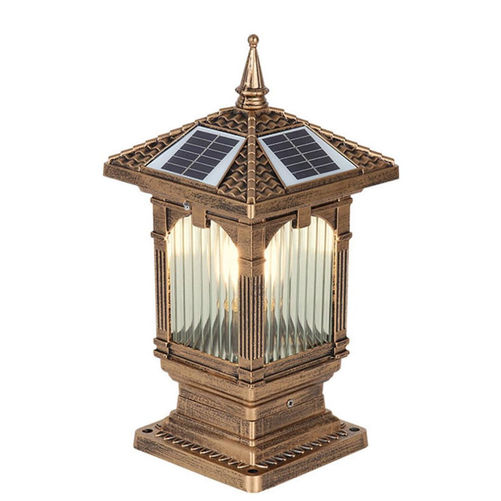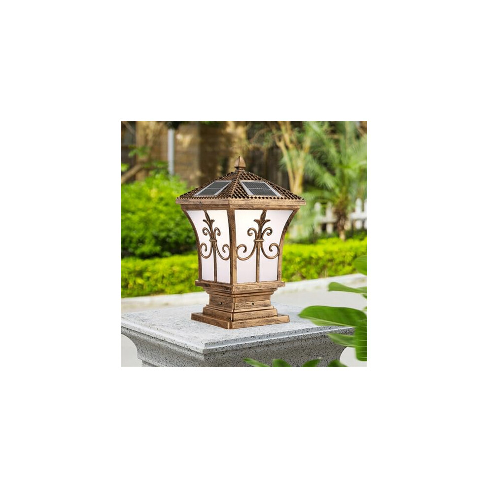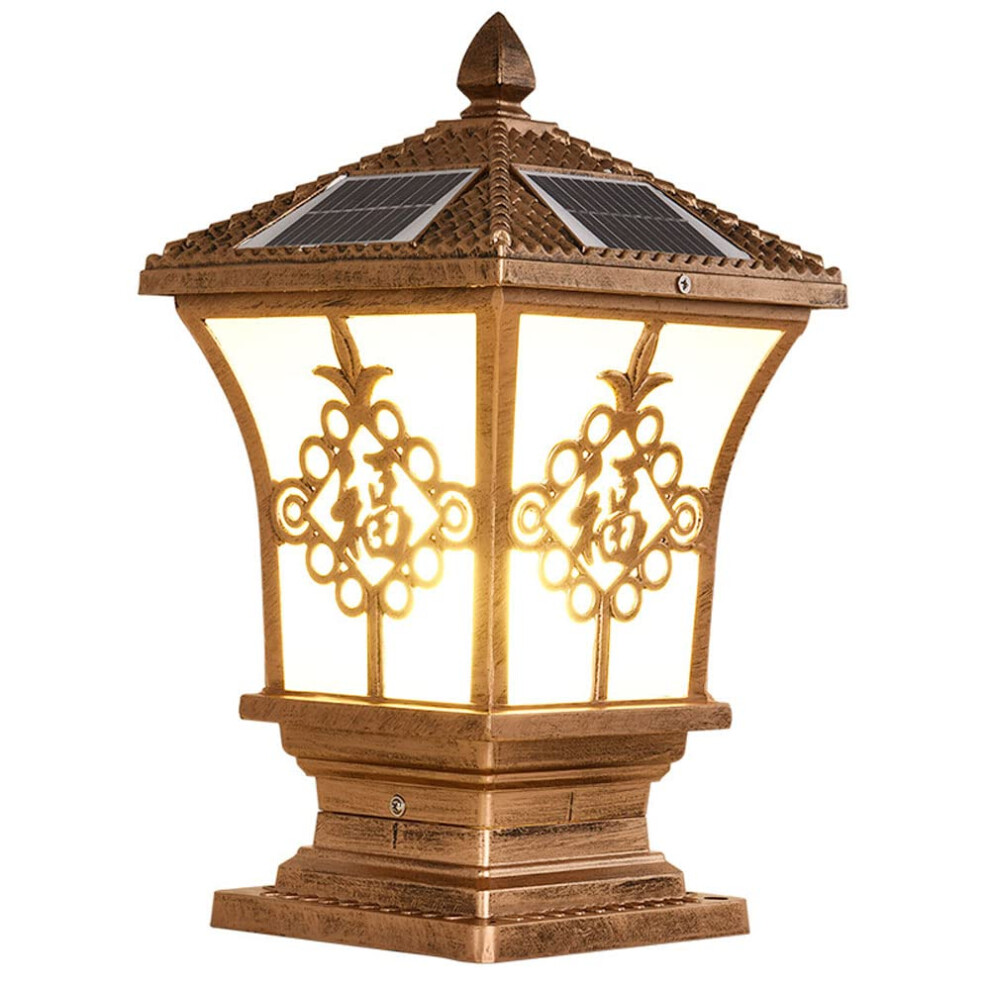 Solar Outdoor Pillar Lamps, Metal, Bronze Finish, Post Lamp for Villa Garden (28 cm)