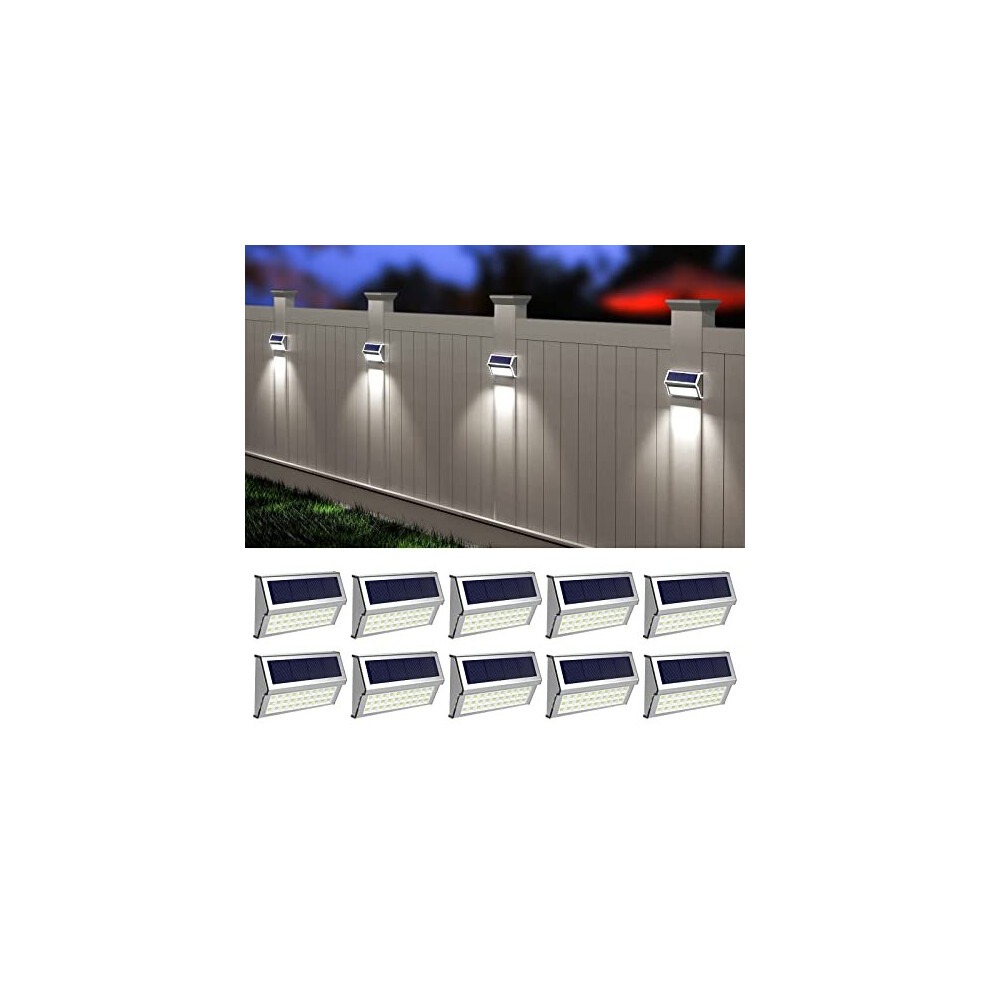 ROSHWEY Outdoor Lights, 10 Pack 30 LED Fence/Deck Lights Waterproof Post Solar Lamps Stainless Steel Outside Step Lighting for Backyard Walkway
