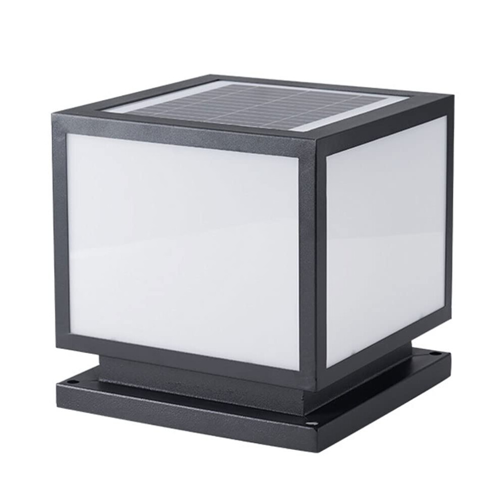 Solar Outdoor Pillar Lights Modern Galvanized Metal Post Lamps with Remote Control IP55 Waterproof for Fence and Deck 30x25cm
