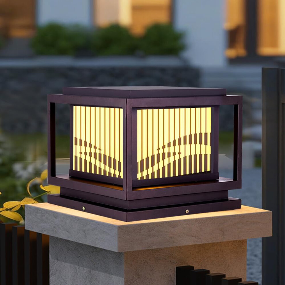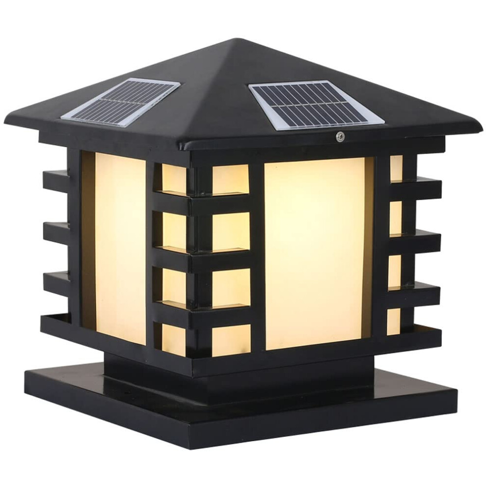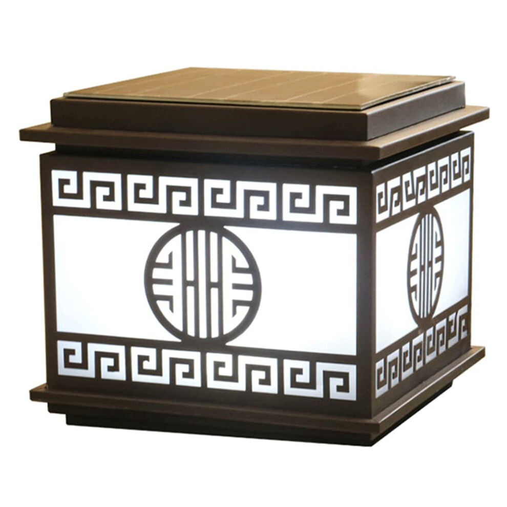 Chinese Style Solar Stigma Lamps Waterproof Square Fence Post Lights 11.8Inch By 10.2Inch Rustproof Pillar Headlight