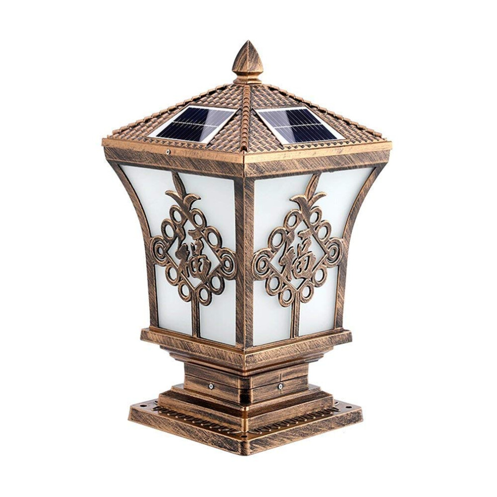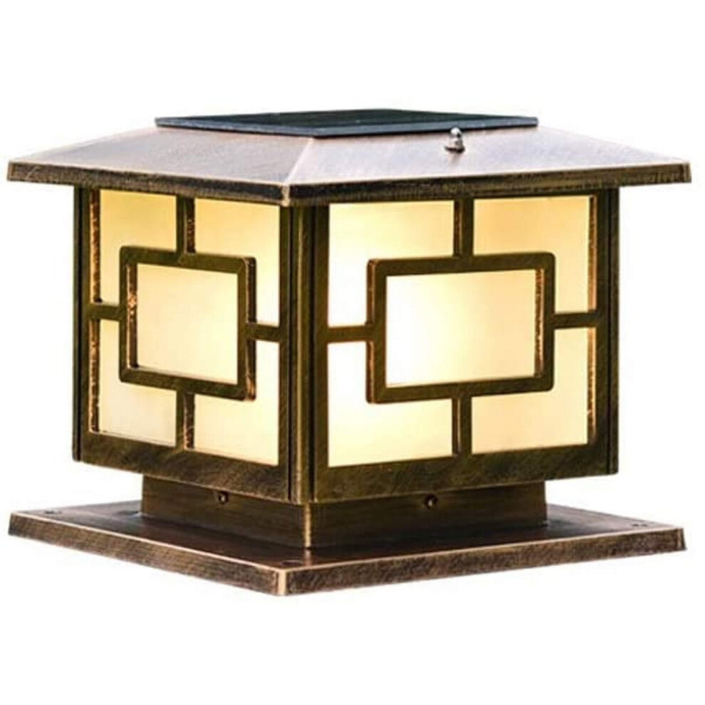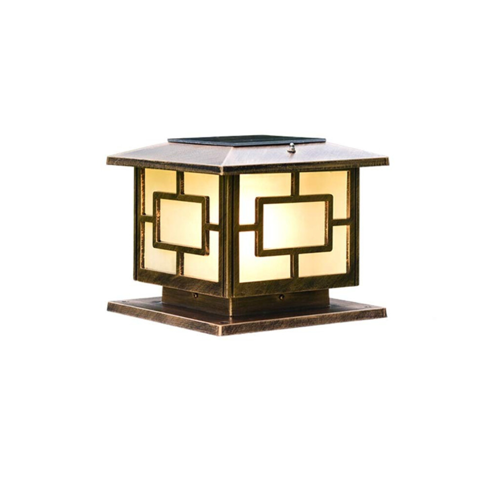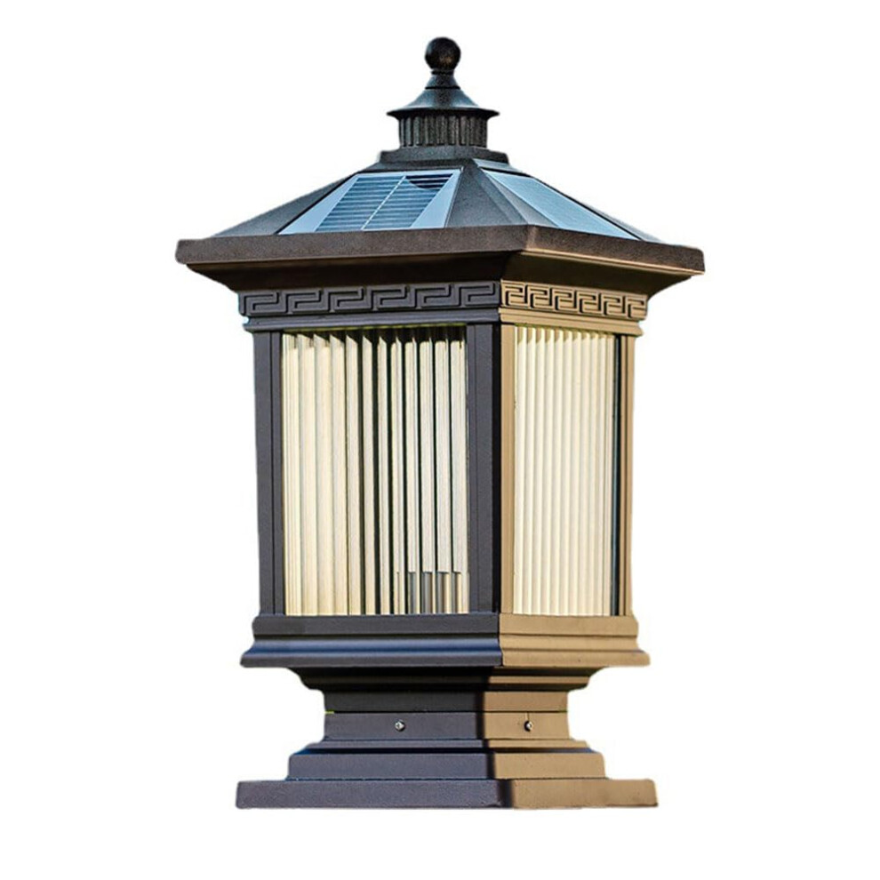 IP65 Waterproof Rainproof Outdoor Solar Energy Pillar Post Light Villa Garden Patio Bronze Aluminum Acrylic Lantern LED