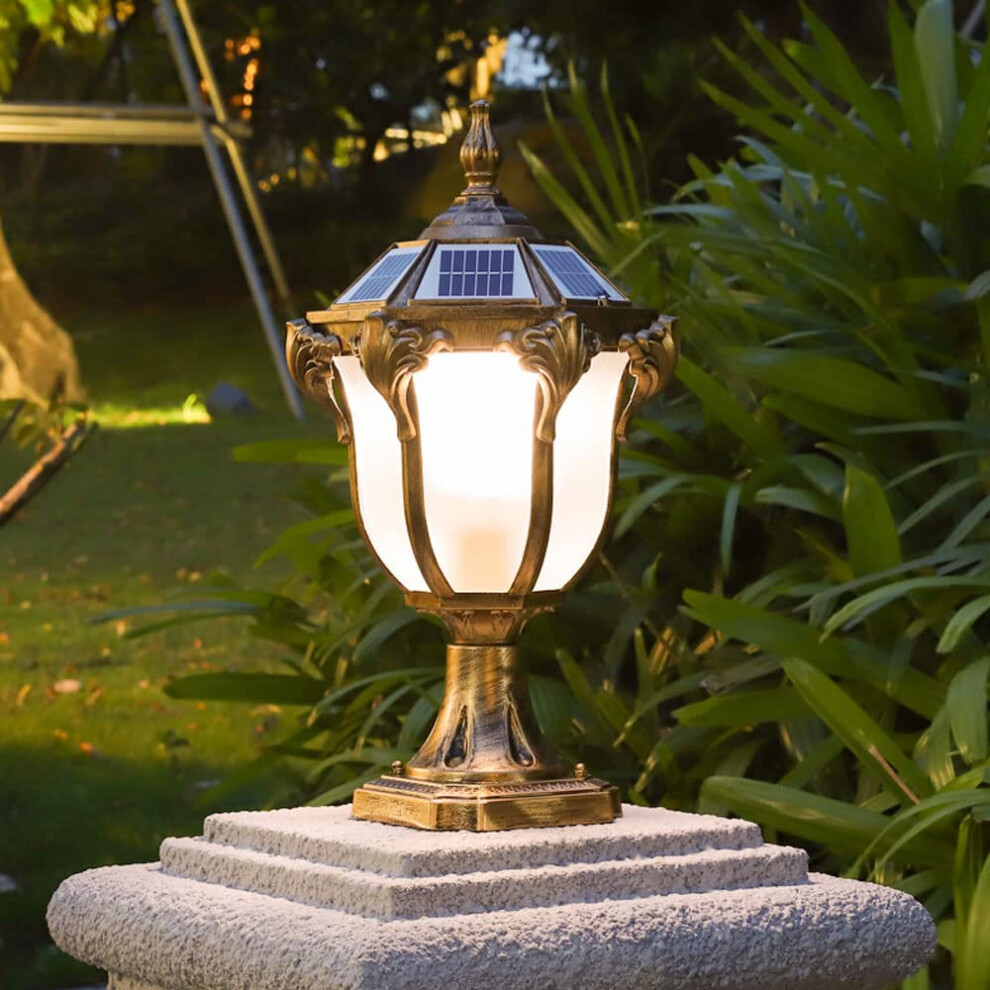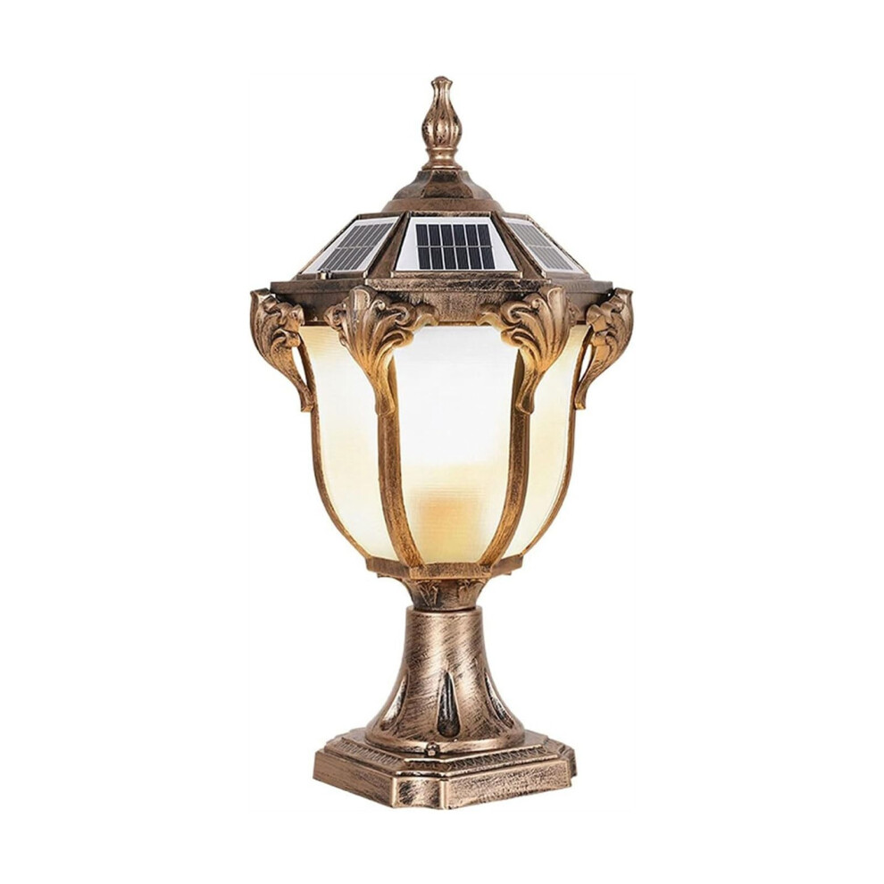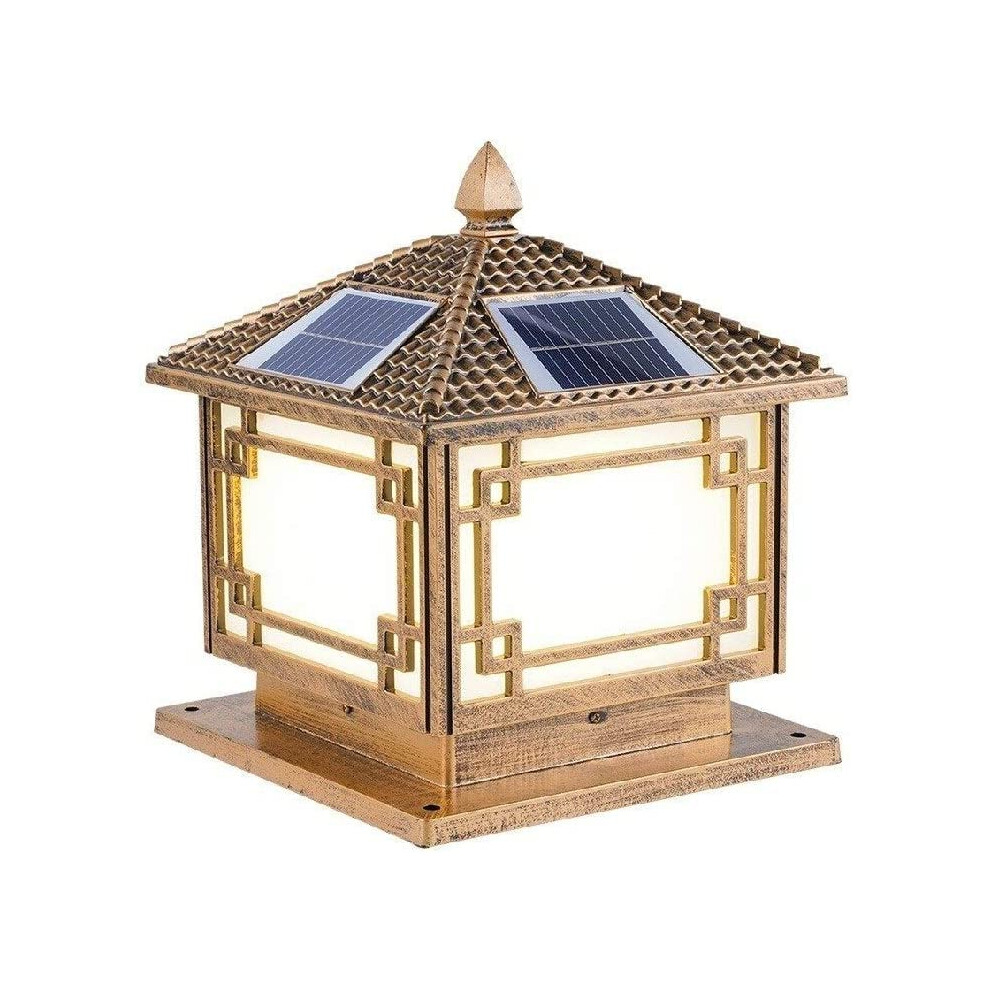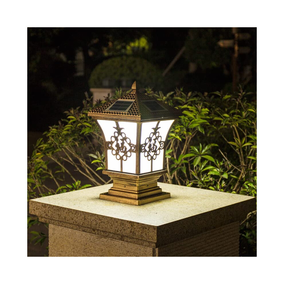 IP65 Waterproof Rainproof Outdoor Solar Energy Pillar Post Light Villa Garden Patio Bronze Aluminum Acrylic Lantern LED