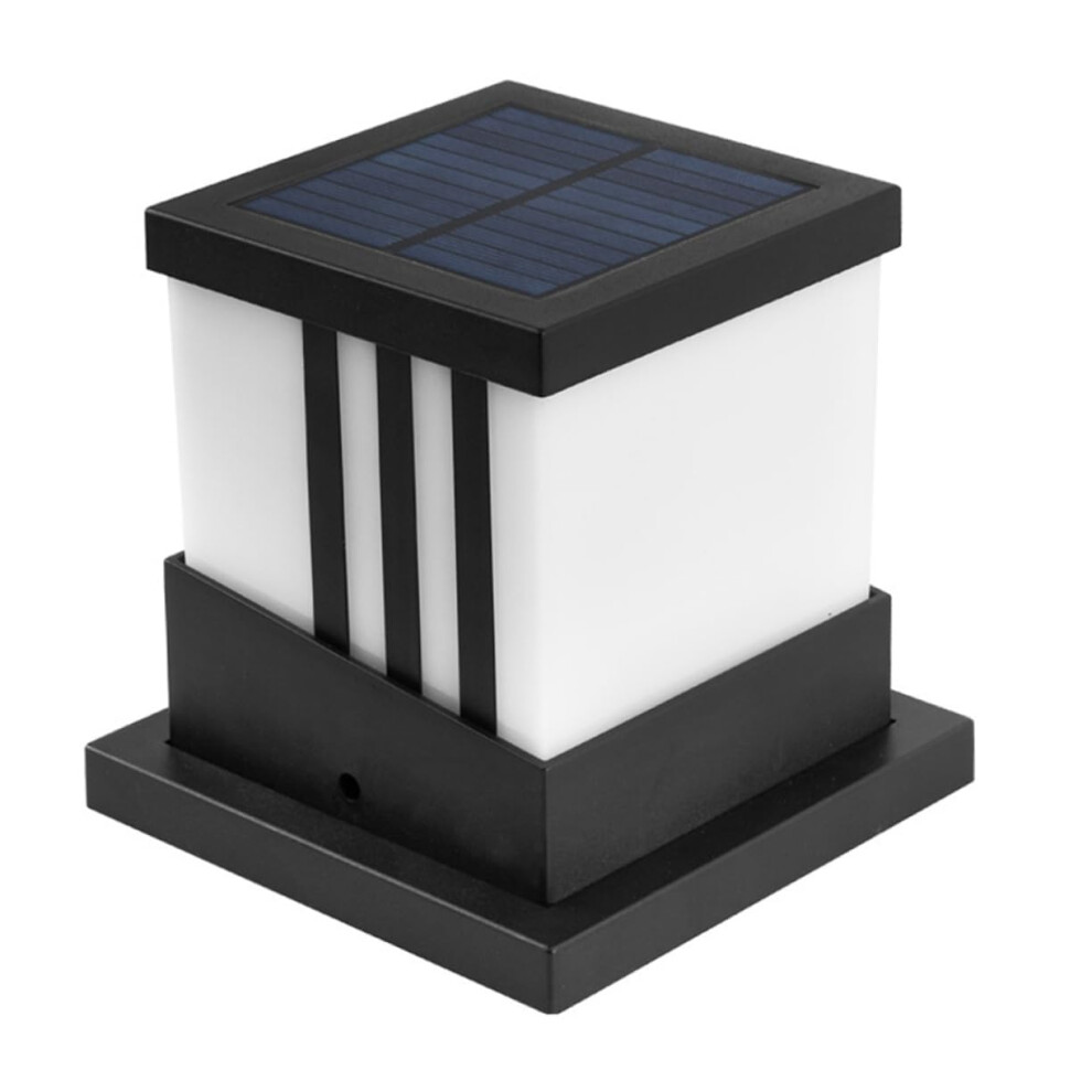 Solar Powered Outdoor Post Cap Light Waterproof LED Pillar Lantern For Fence Railing Auto On Off Square Column Lamp Black