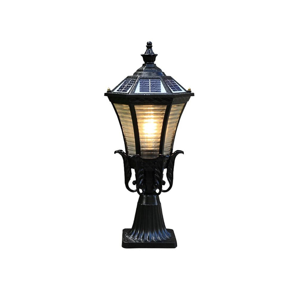 Glass Lantern Solar Column Lamp Outdoor Garden Post Light Antirust Waterproof Patio Wall Light Table Lamp Size M