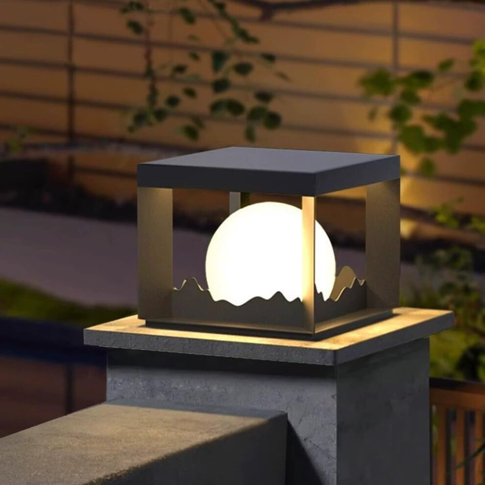 Outdoor Post Lights Solar Powered Waterproof Square Column Caps Lantern 30 Cm Modern Large Post Light Garden Fence Deck