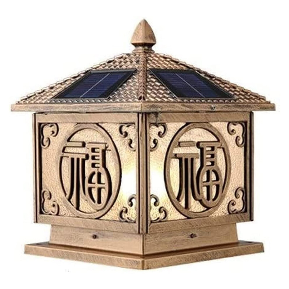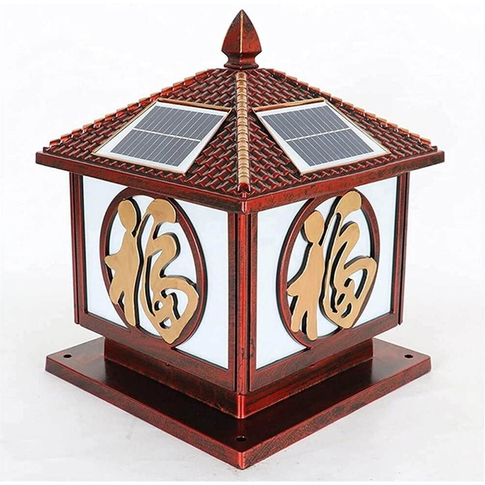 LED Solar Post Lights, Waterproof Outdoor Column Lamp, Chinese Style Retro Square Pillar Light, Japanese Vintage Street Lantern