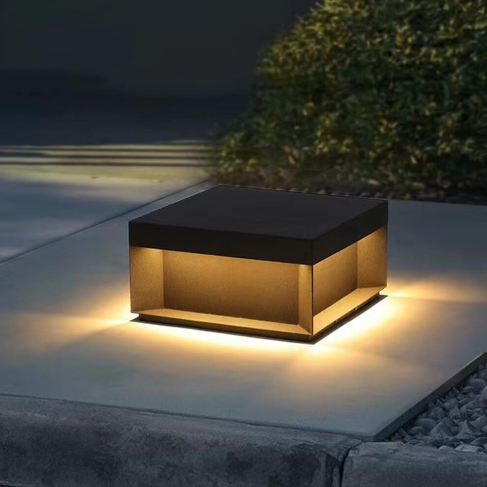 LXYAYY Solar Post Cap Lights Outdoor LED Lighting Deck Fence Cap Light Exterior Waterproof Column Lantern Modern Black Square Patio Pole Light,Foyer Chandelier