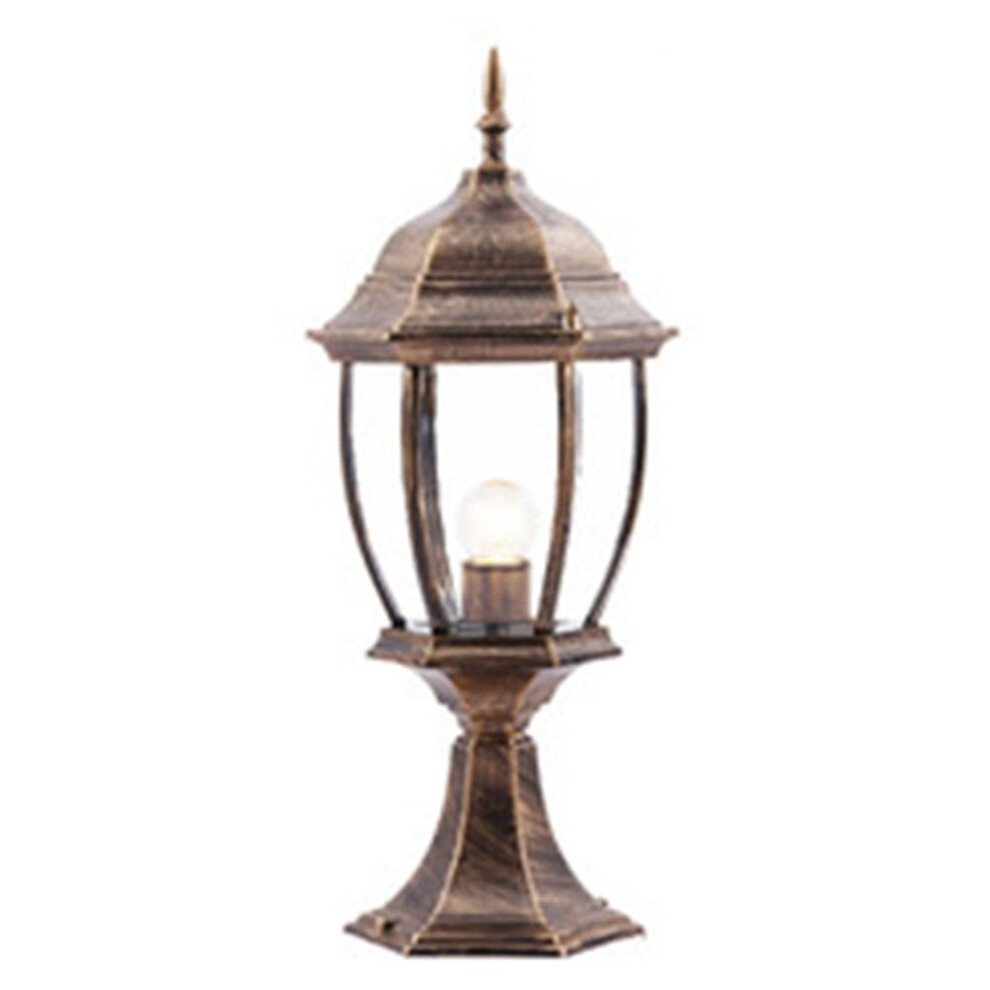Outdoor Solar Post Light Vintage Bronze Hexagonal Pillar Lantern IP55 DieCast Aluminum Pedestal Auto On/Off Garden Patio