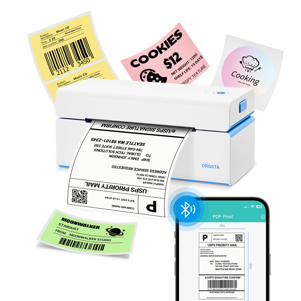 ORGSTA Shipping Thermal Label Printer Machine 4x6 Bluetooth and USB T001 Plus Postage Sticker Maker For DHL Address Parcels