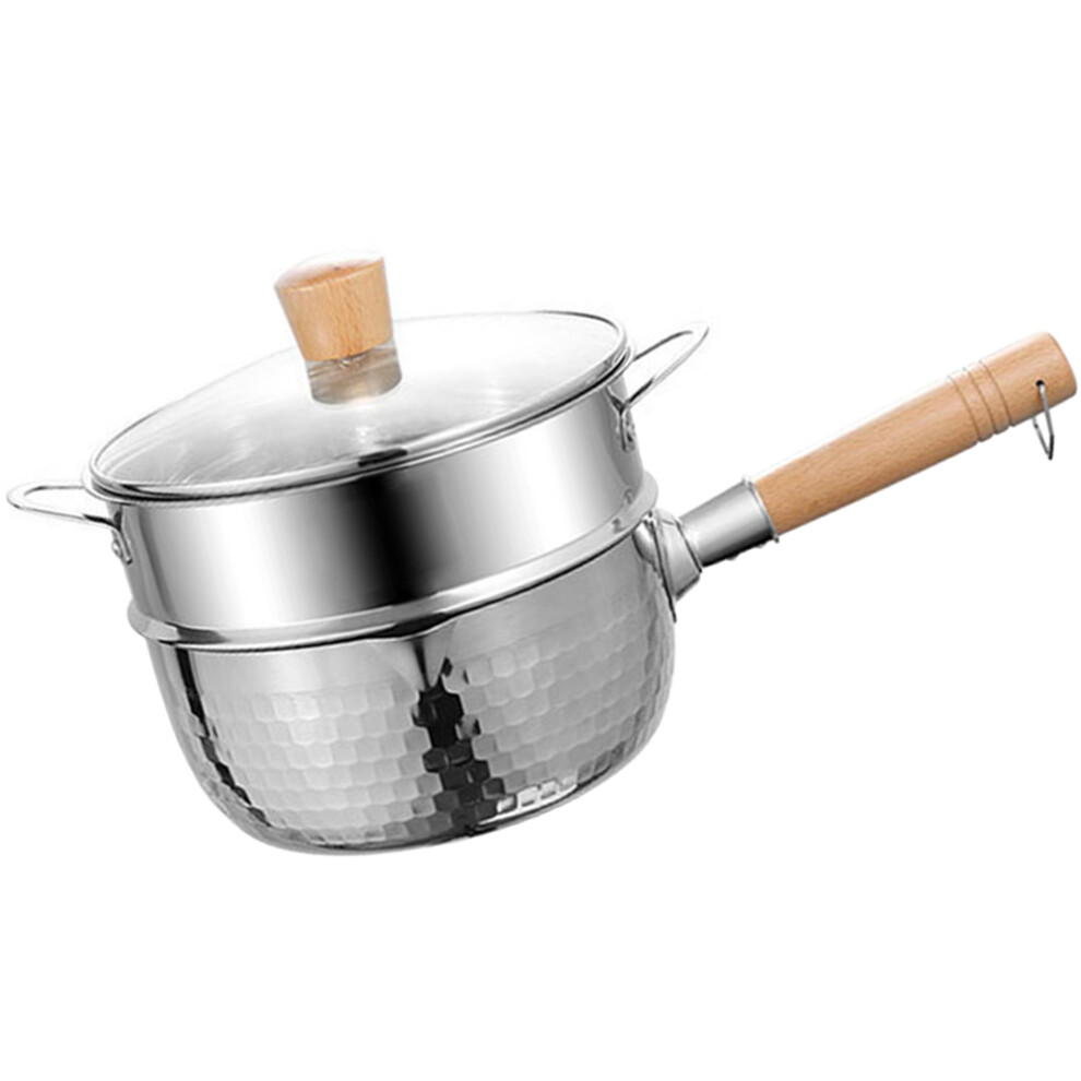 18cm Stainless Steel Soup Pot with Lid and Steamer Basket, Large Capacity, Even Heat Distribution
