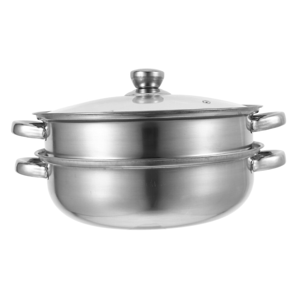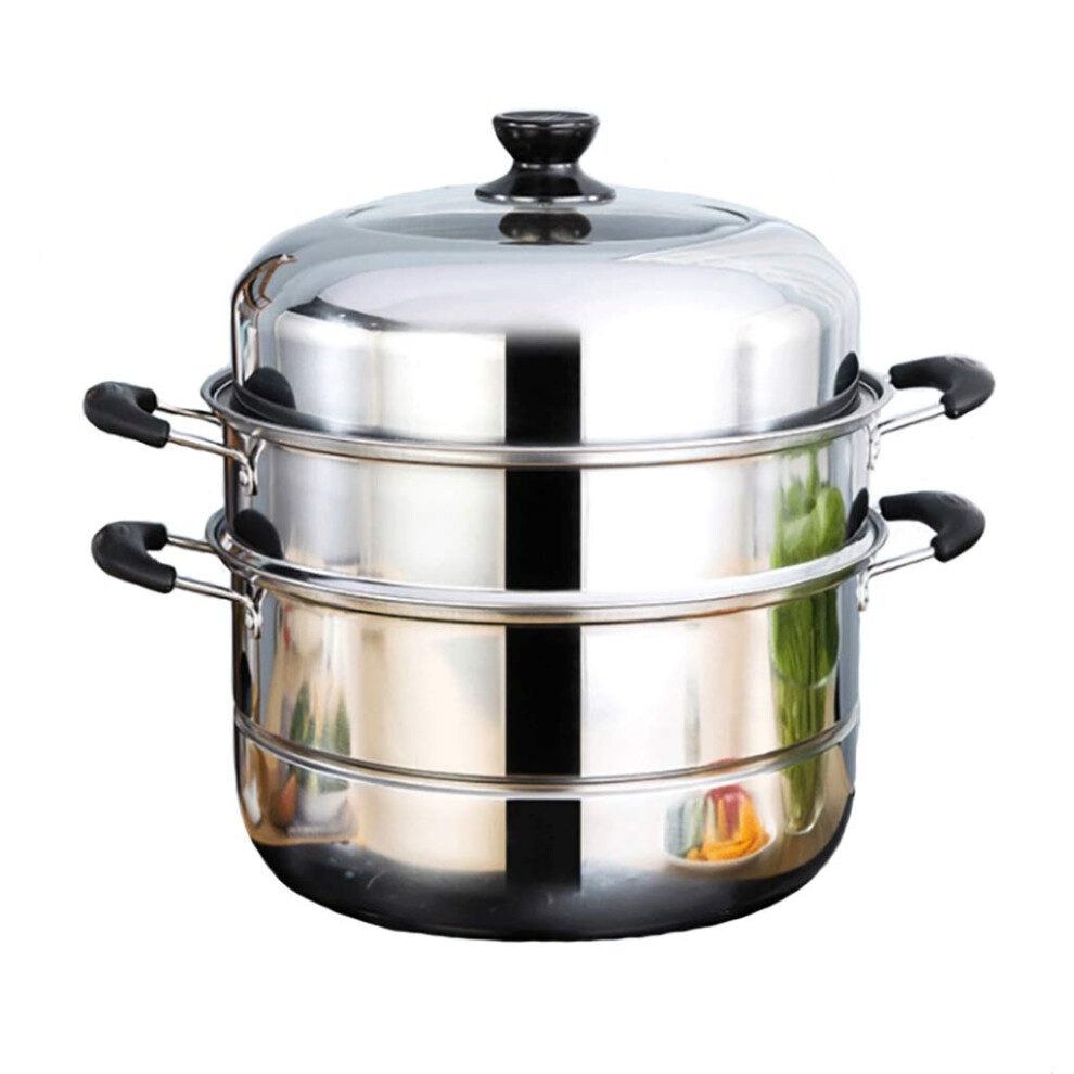 Stock Pot Steamer, Double Deck Stainless Steel, Large Soup Pot for Gas Range and Electromagnetic Oven