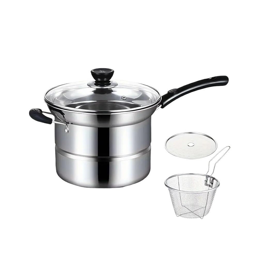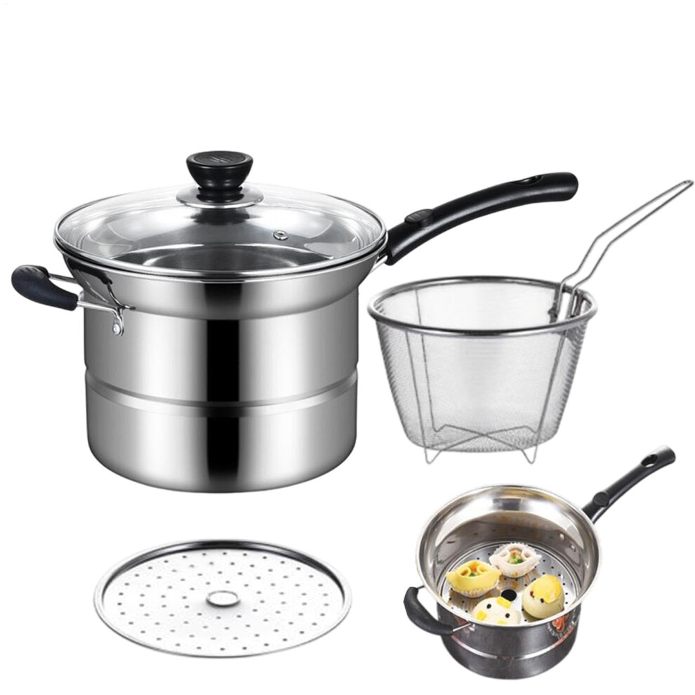 Stainless Steel Multi-Function Pot with Steamer and Strainer for Gas Stove, Durable Electric Cooking and Deep Frying Stockpot