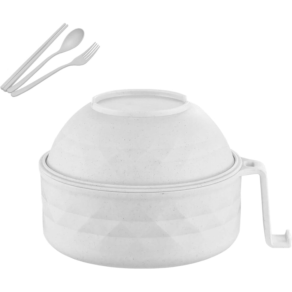 Microwave Ramen Noodle Bowl with Lid - Complete Set with Chopsticks, Spoon, Fork and Handled Soup Pot for Instant Meals & Solo Dining (White)