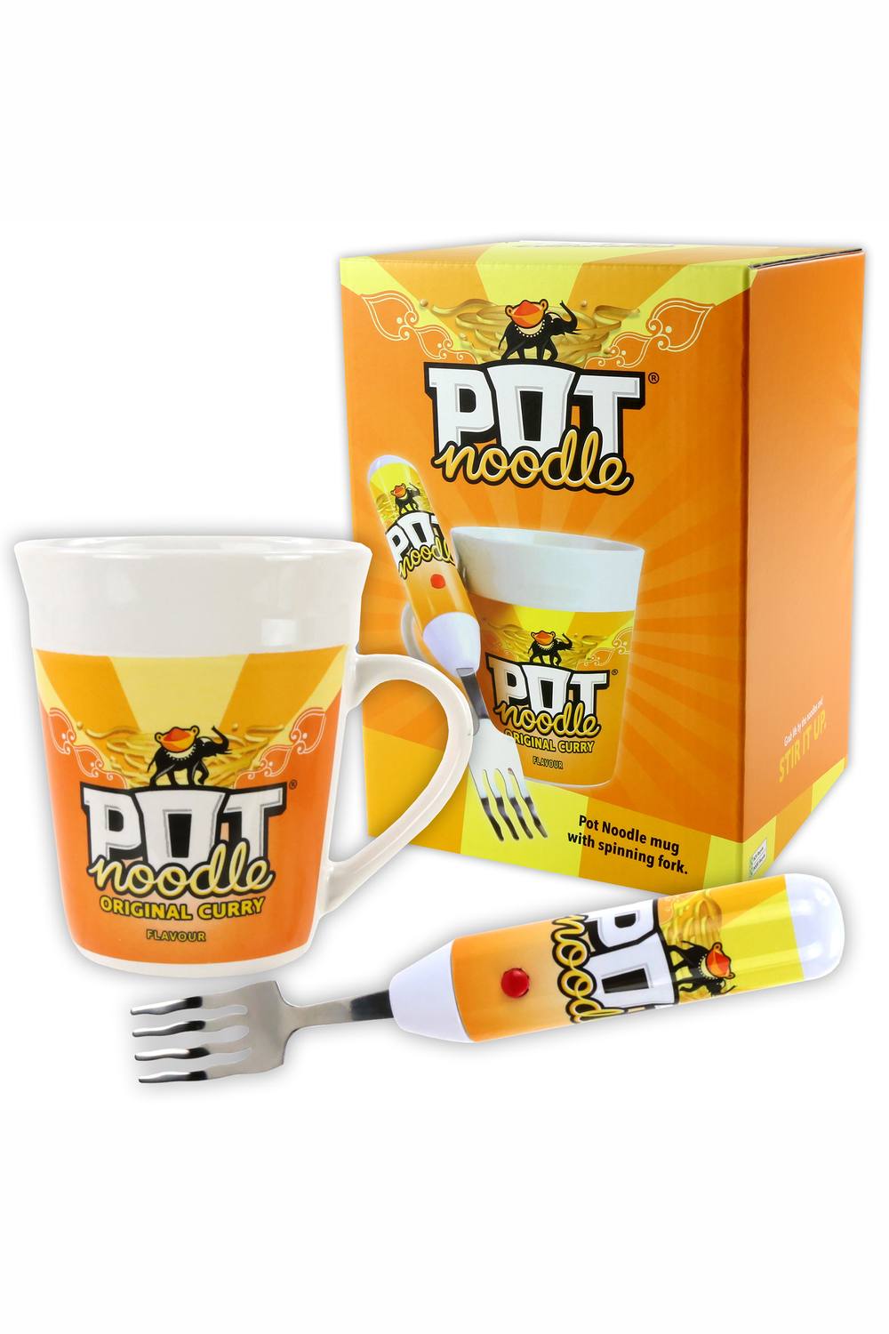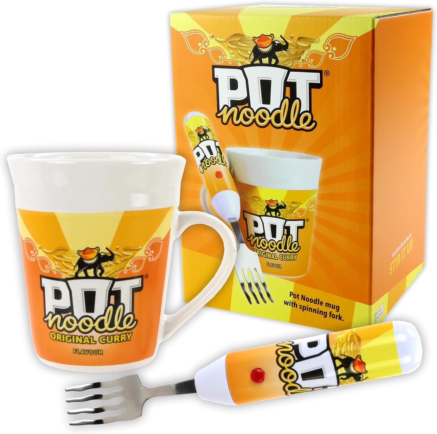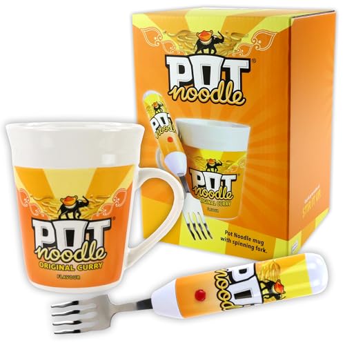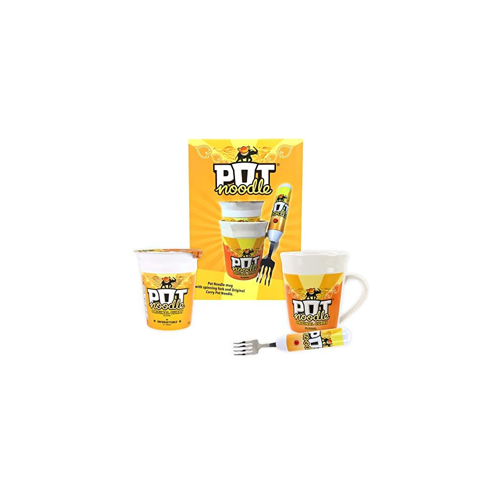 Pot Noodle Gift Set with Spinning Fork & Mug - Funny Novelty Gifts for Men, Women, Teens & Students - Includes Original Curry Pot Noodle (90 grams)