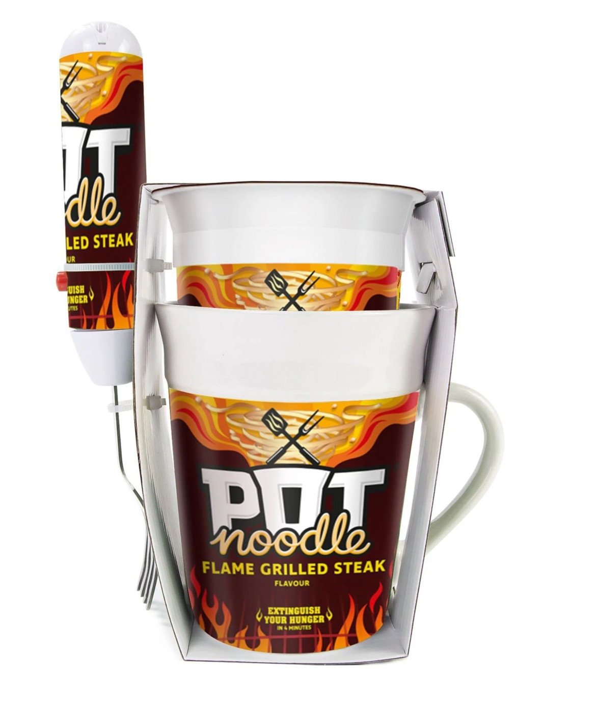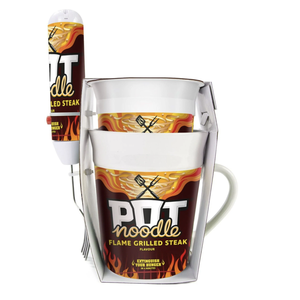 Pot Noodle Mug with Spinning Fork Gift Flame Grilled Steak Flavour Pot MAR 2026