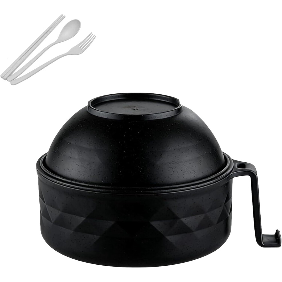 Microwave Ramen Noodle Bowl with Lid - Complete Set with Chopsticks, Spoon, Fork and Handled Soup Pot for Instant Meals & Solo Dining (Black)