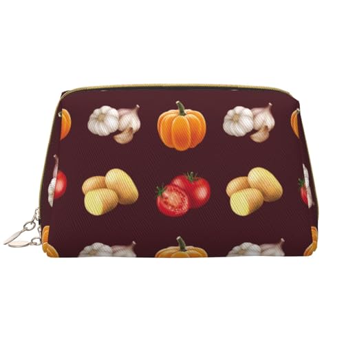 VOSERY Makeup Bag, Cosmetic Bags Travel Toiletry Bag for Women, Large Capacity Makeup Bag Organizer, Garlic tomato pumpkin potato Make up Bag, Cute Makeup Pouch, Waterproof Leather Makeup Case