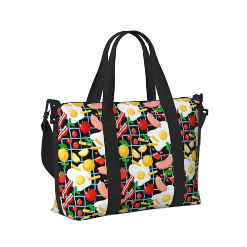 Buewutiry Travel Tote Bag for Women Work - Lightweight Lemon Tomato Potato Sausage Shoulder Bag Nurse Bag Beach Handbags for Women, Fashion Large Tote Purse for Women with Zipper