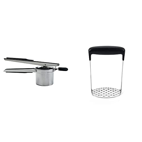 Grunwerg Ricer Stainless Steel Masher Fruit and Vegetable Press with Ergonomic Handle Quick and Easy Mashed Potatoes, 18/10, 28 x 8 x 10 cm & OXO Good Grips Smooth Potato Masher