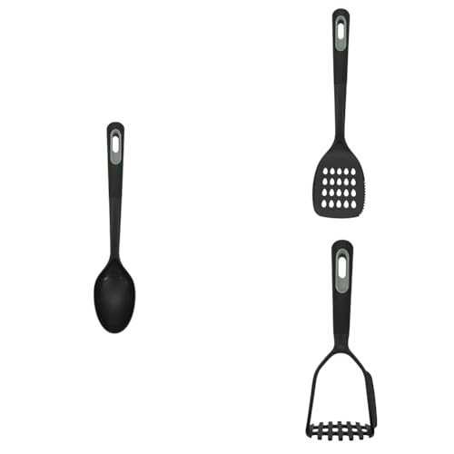 Tasty Everyday Kitchen Utensil Bundle, 2in1 Potato Masher & Spaghhetti Spoon, Cooking Turner, Serving Spoon with Measurements, Non-Scratch, Colour: Black & Grey