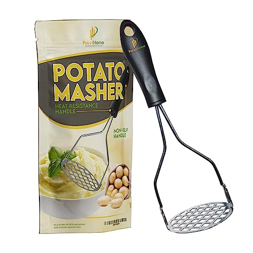 PALVIHOME Potato Masher with Non Slip Heat Resistance Handle and Large Round Press Plate for Vegetable Fruits and Baby Food Sturdy & Easy to Use for Cooking and Kitchen Gadget