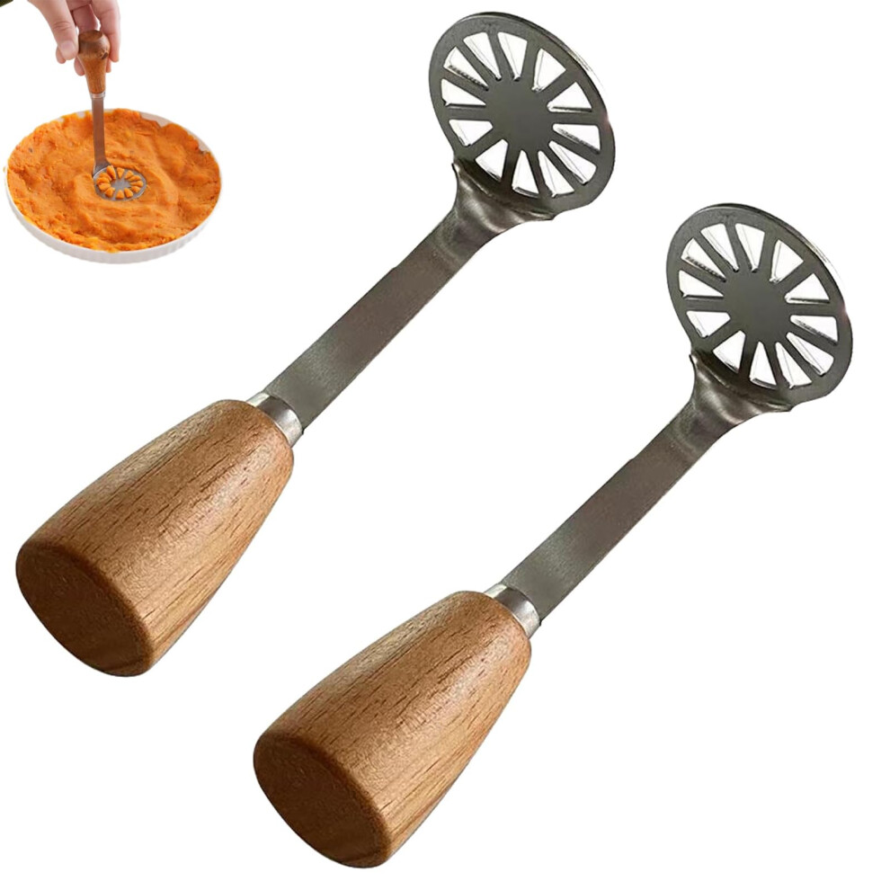 2Pack Mini Potato Mashers Stainless Steel with Ergonomic Wooden Handle for Avocado Bean Pumpkin