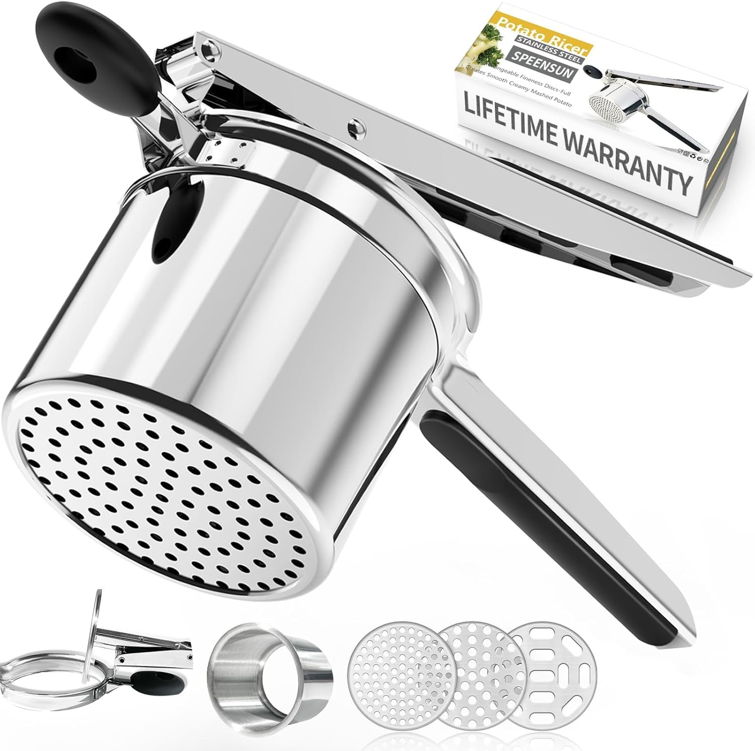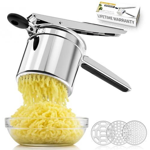 SPEENSUN Potato Ricer,Potato mashers,Large 15oz Heavy Duty Stainless Steel for Fluffy Mashed Potatoes,Fixed Ricer Disc Potato Press Without Messy,wit