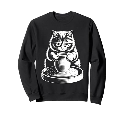 Cat Pottery Wheel Ceramic Artist Clay Art Retro Potter Humor Sweatshirt