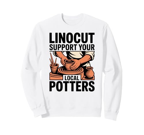 Linocut Support Your Local Potters Pottery Wheel Sweatshirt