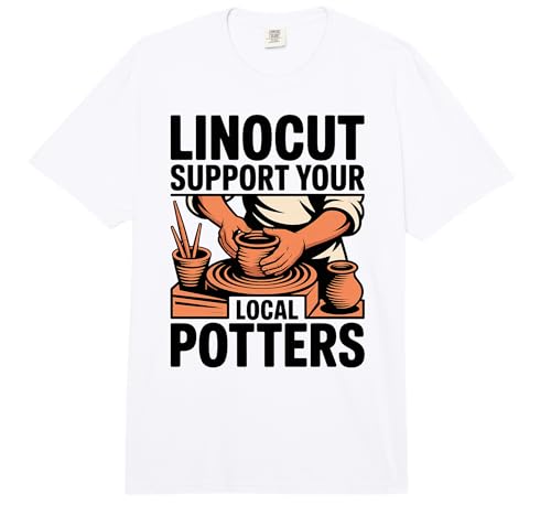 Linocut Support Your Local Potters Pottery Wheel Comfort Colors Adult Heavyweight T-Shirt