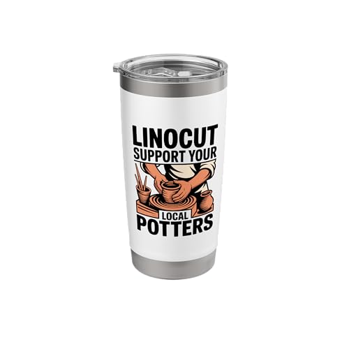 Linocut Support Your Local Potters Pottery Wheel Stainless Steel Insulated Tumbler