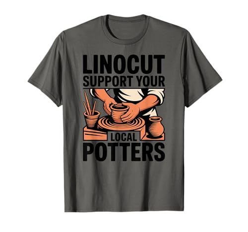 Linocut Support Your Local Potters Pottery Wheel T-Shirt