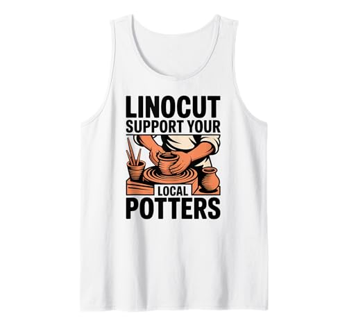 Linocut Support Your Local Potters Pottery Wheel Tank Top