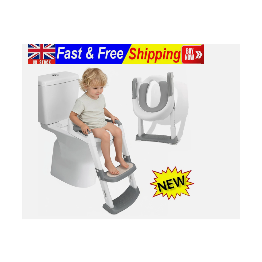 Adjustable Potty Ladder Seat for Toilet Training with Steps, Handle & Soft Cushion Design Non Slip & Space Efficient
