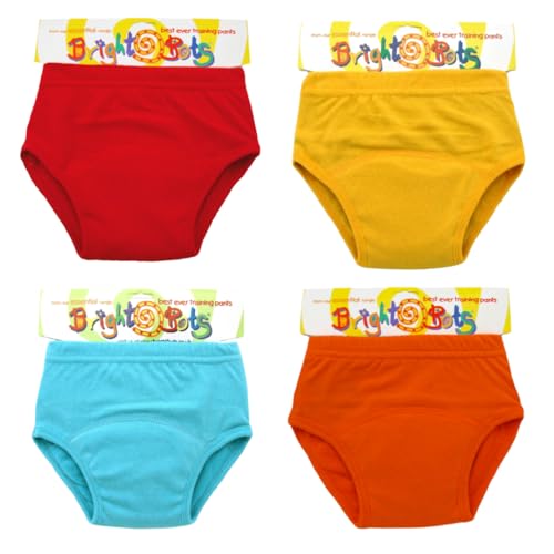 Bright Bots Potty Training Pants with Absorbent and Water Resistant Layer. Bright Pull On Washable Cotton Pants for Toddlers 4 Pack